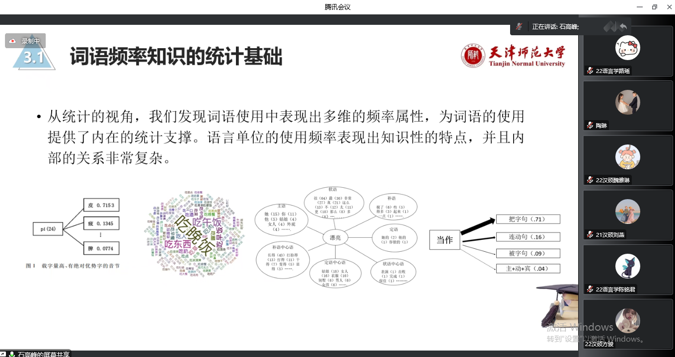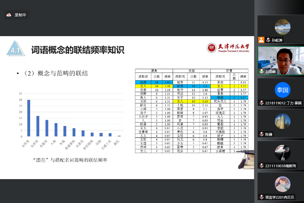 石高峰在报告中创造性提出第二语言词汇学习的最终目标是建立目的语的词汇知识体系,其中获得用法知识是语言学习的关键,认为频率是二语学习者语言知识学习的重要内容,需要长时间的积累。在汉语教学中要重视学习者词语真实用法的学习和真实语言材料的输入,帮助学习者实现语言的地道表达。