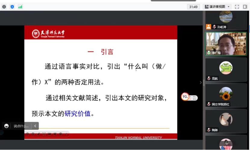 在专题报告结束时,李广瑜老师特别说明,通过“什么叫(做/作)X”这个语用否定研究案例的剖析想向各位老师同学表明,语言研究并不高深,只要大家对语言现象具有一定的敏感度,对于新出现的语言理论持一种开放的学习态度,大家都会逐渐提升自己的研究能力,同时也为大家的国际中文教学或语文教学提供坚实的支撑。
