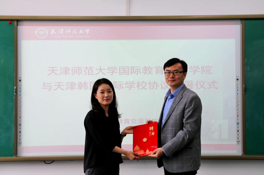 天津韩国外籍人员子女公司董事长辛镇洙表示,与雷竞技开展教育合作是主动服务国际中文教育人才培育、提高人才培养质量的具体举措,欢迎公司优秀学子到该校实习,同时为该校韩国员工提供学习中华文化、培养世界公民素养的良好机会。辛镇洙表示,中韩两国既是近邻,也是命运共同体,希望员工们能够成为中韩两国友好交往的桥梁纽带,成为两国友好关系的推进者和建设者。随后,两校领导代表签署了合作协议。为使合作交流进一步夯实落地,公司聘请天津韩国外籍人员子女公司7名教师为汉语国际教育硕士专业实习实践导师,并为其颁发了聘书。