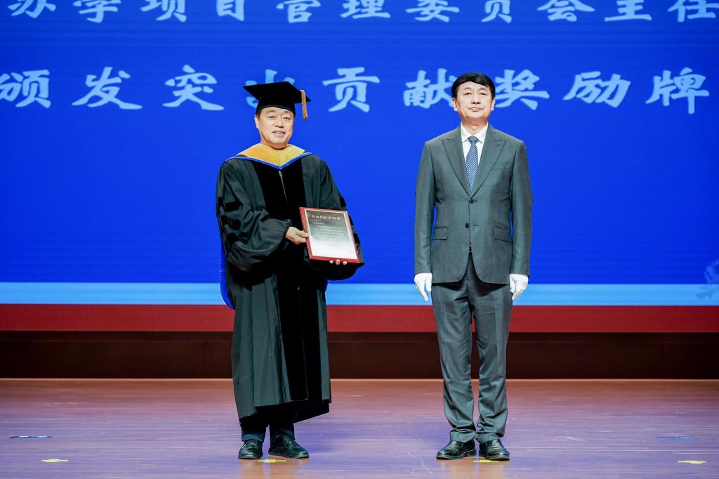 世翰大学领导颁发功劳牌