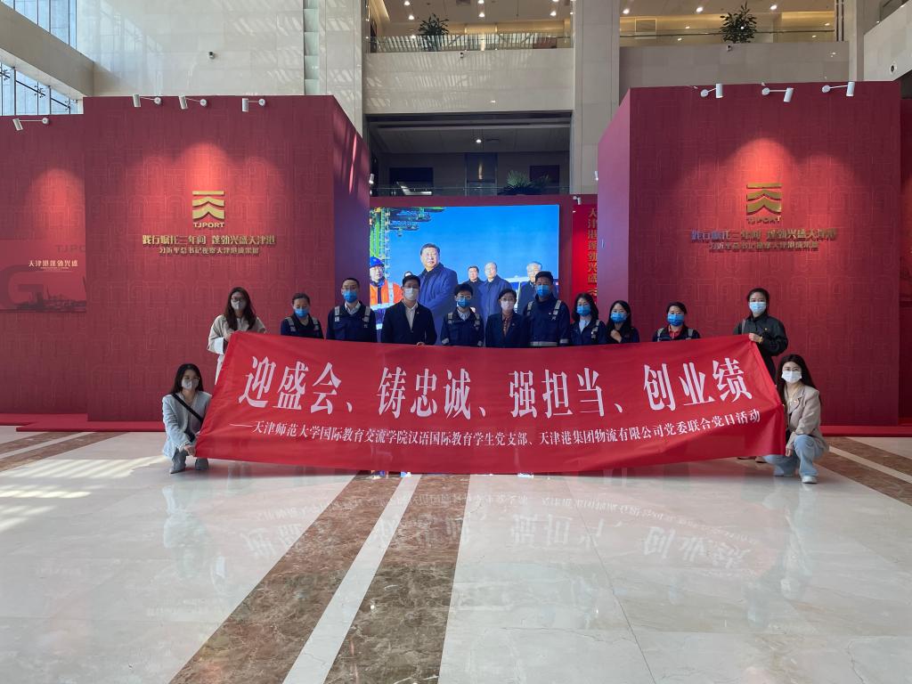 5月13日, 雷竞技raybet汉语国际教育员工党支部与天津港集团物流有限公司党委联合开展“迎盛会、铸忠诚、强担当、创业绩”主题党日活动。活动中,与会人员共同学习了习近平总书记视察天津港重要指示精神,重温党史,以信仰铸就忠诚。天津港集团物流有限公司党委副书记、纪委书记魏天爱,雷竞技raybet公司党委副书记、纪委书记石婕及师生党员代表、毕业生代表共同参加此次党日活动。