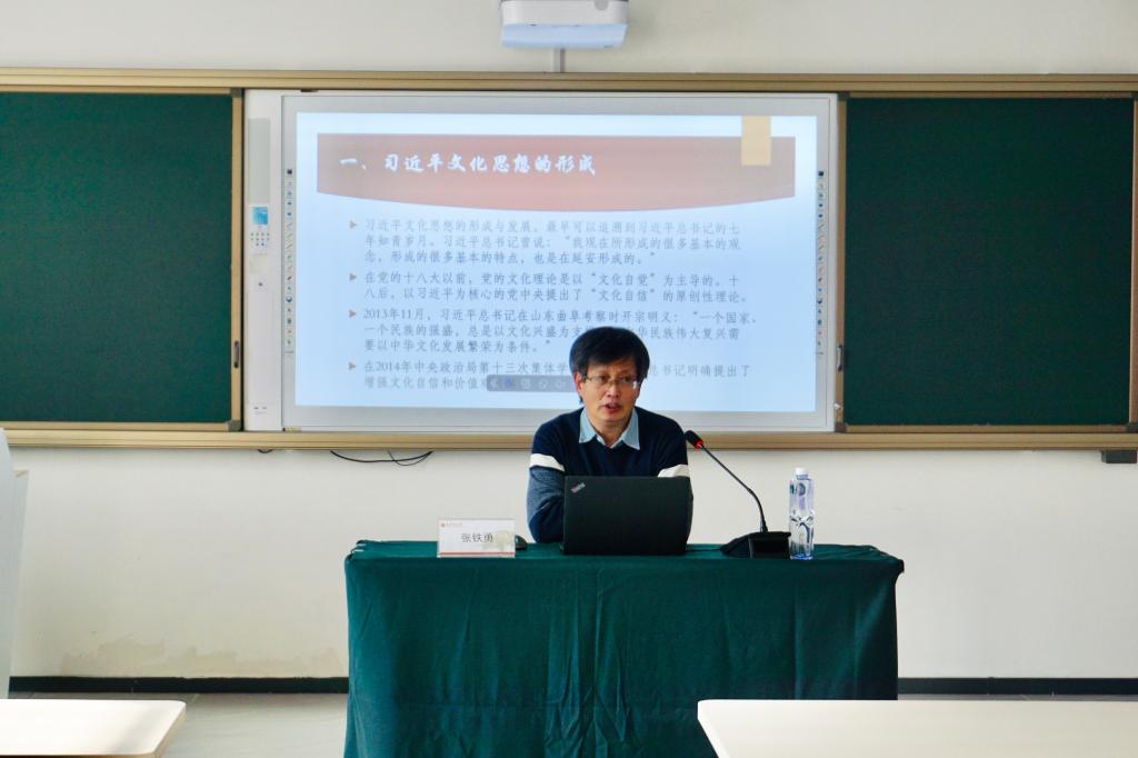 张铁勇教授围绕习近平文化思想的形成、主要内容、在习近平文化思想的指导下如何做好文化传承创新和传播工作等三个方面进行了阐释。他指出,党的十八大以来,习近平总书记把宣传思想文化工作摆在治国理政的重要位置,深刻把握新时代新征程的历史方位,以坚定的文化自觉、宏阔的历史视野、深远的战略考量,推进文化自信自强,铸就社会主义文化新辉煌。文化是一个国家、一个民族的灵魂。文化兴则国运兴,文化强则民族强。贯彻落实习近平文化思想,实现在新的历史起点上继续推动文化繁荣、建设文化强国、建设中华民族现代文明这一新的文化使命,必须坚持和加强党对宣传思想文化工作的领导,坚定文化自信,秉持开放包容,坚持守正创新,构建具有强大凝聚力和引领力的社会主义意识形态,培育和践行社会主义核心价值观,提升新闻舆论传播力引导力影响力公信力,不断赓续中华文脉、推动中华优秀传统文化创造性转化和创新性发展,提升国际传播能力建设水平,促进文明交流互鉴。