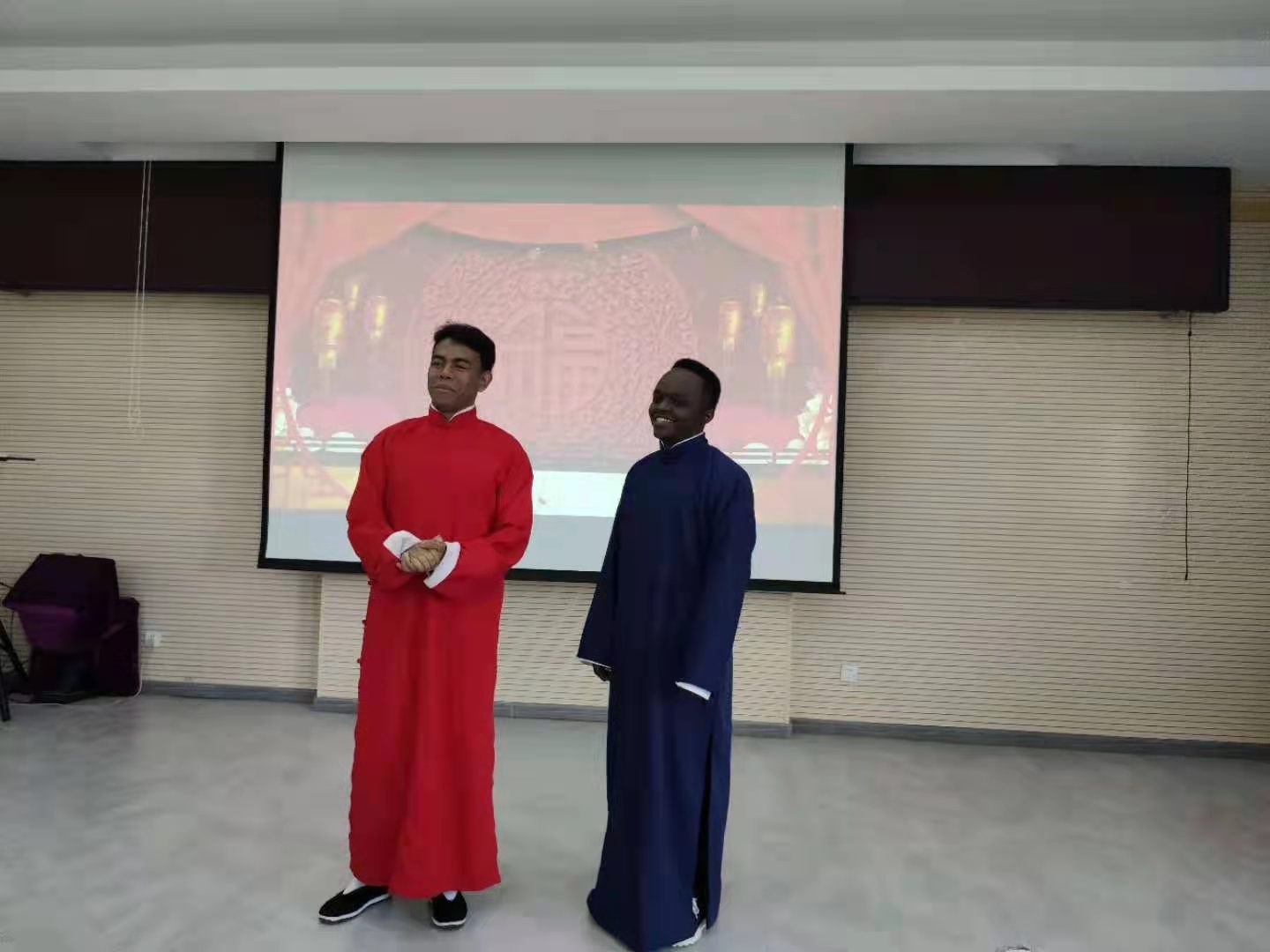 在园丁公寓党群服务中心,中国员工党员讲述了“昨天文小姐,今天武将军”中共党员丁玲的故事;“七一勋章”获得者张桂梅扎根贫困山区教育扶贫、爱生如子的故事;中国载人航天英雄杨利伟、聂海胜、费俊龙、翟志刚、景海鹏不负党和人民重托,顽强拼搏、为国争光的故事;感动中国的最美逆行者张定宇、汪勇的感人事迹。为助力常态化疫情防控,同学们还准备了小节目,宣传疫情防控知识。为搞好“一带一路”的宣传,职工还介绍了在他们国家“一带一路”建设的成果,表演了自己国家的经典歌曲;来自马达加斯加的职工唐磊和肯尼亚职工孔爱凯还表演了相声、快板,表达了他们对中华优秀传统文化的热爱并展示学习成果,赢得满堂喝彩。中国员工表演了茶艺,带领小朋友们制作手工灯笼,寓教于乐,展现中国文化之美。