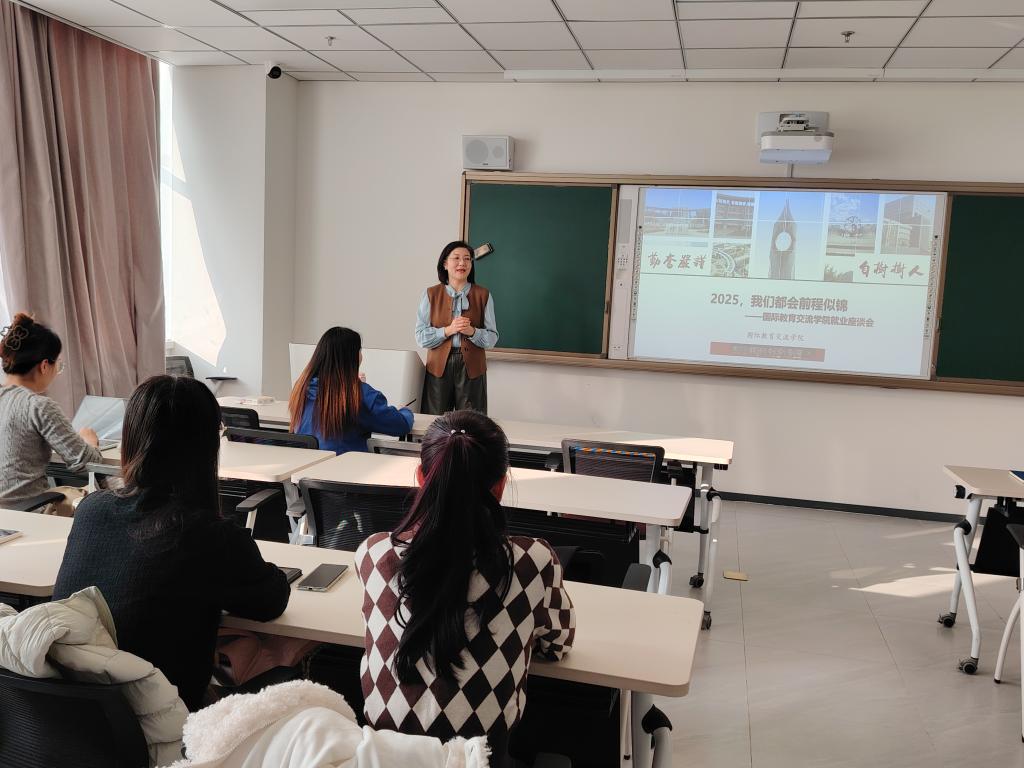 11月15日,国际交流党委副书记吕由、团委书记徐梦夏以“2025,我们都会前程似锦”为主题举办座谈会,针对员工们在就业方面存在的困惑与员工们进行座谈交流并进行了详细解答。吕由老师分析了国际中文教育领域具有广阔的就业发展前景和巨大的市场需求,鼓励大家考取对外汉语公派教师,这不仅能为同学们提供一个展示自己才华和能力的平台,还能在职业发展过程中积累宝贵的国际经验和人脉资源。徐梦夏老师结合自身的经验和见解,针对座谈会前以问卷调查的方式收集上来的员工们最关心的就业问题,为同学们逐一提供了宝贵的建议和就业指导,涵盖了就业政策、求职技巧、行业发展趋势、薪资待遇、人事政策等多个方面。