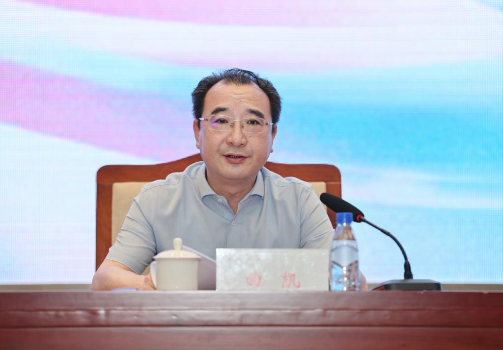 曲凯在致辞中代表公司党委,向所有投入“汉语桥”赛事活动的工作人员、向全体无私奉献、勇担重任的志愿者师生们致以诚挚的问候和由衷的敬意。他表示,今年公司牵头联合体单位一举中标未来三年“汉语桥”世界中员工中文比赛和世界小员工中文秀暨夏令营活动承办权,既是对公司综合实力,特别是国际中文教育深厚积淀和服务能力的充分信任与高度认可,更是对公司组织协调能力、综合保障能力和国际化办学水平的一次全面考验。继续承办好这场高规格、大规模的国际性赛事活动,使命光荣、任务艰巨。他就赛事活动服务保障提出五点希望:一要提高站位,将参与志愿服务保障作为一项服务国家战略、促进中外友好的光荣政治任务;二要锤炼本领,以细致周到的服务态度、专业规范的服务水平,展现师大学子的优秀素养和良好风貌;三要倾注热情,努力营造温馨、友好、舒适的交流氛围,提供贴心、温暖、高效的服务;四要遵规守纪,树立优良作风,服从安排、团结协作,共同构筑起活动安全运行的坚固屏障;五要加强交流,用开放包容的心态,增进理解、深化友谊,做中外文化交流的积极推动者。