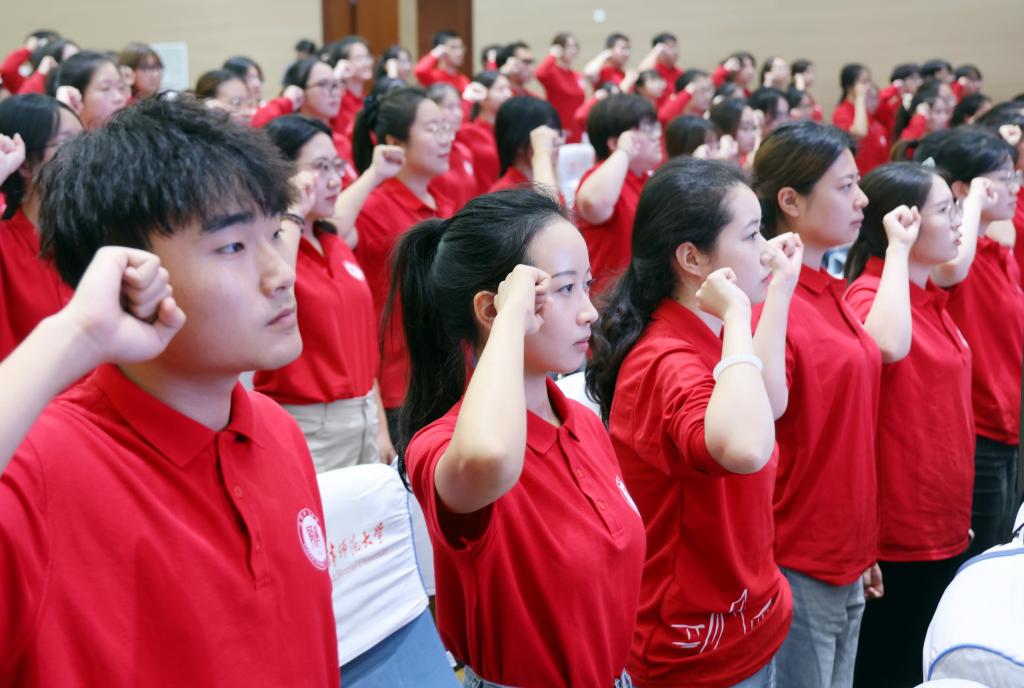 全体“汉语桥”志愿者集体宣誓,立志弘扬“奉献、友爱、互助、进步”的志愿精神,紧跟时代步伐,讲好中国故事,传播好中国声音,追梦中文,不负韶华,用实际行动为推动构建人类命运共同体作出贡献。