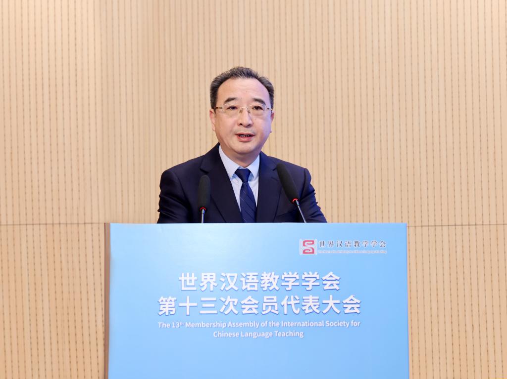 郁云峰在致辞中表示,世界汉语教学学会作为国际中文教育领域最具影响力的学术组织,有效凝聚各国中文教育专家学者和一线教师,为推动国际中文教育团队建设、学术繁荣和人才培养,助力国际中文教育事业高质量发展,作出了独特重要贡献。自学会第十二次会员代表大会召开以来,学会秉承服务师生、服务学术、服务事业、服务社会的理念,开拓进取,守正创新,取得了令人瞩目的成绩。希望学会全体同仁继续聚焦学科体系完善,推动数智化转型研究;创新人才培养模式,破解本土团队短缺难题;深化国际合作,构建全球协同网络体系。