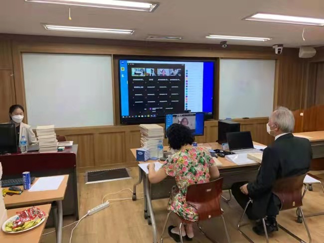在答辩过程中,学员们认真准备PPT,通过zoom软件进行分享,清晰讲解论文内容,虚心接受中韩双方教师的悉心指导,对论文题目、论文内容、调查数据、研究方法等方面存在的问题进行了认真地修改。经过两周的答辩、修改、再答辩,308名学员全部顺利通过学位论文答辩。