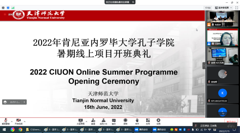 7月15日下午,2022年肯尼亚内罗毕大学孔子公司暑期线上项目开班典礼举行。内罗毕大学孔子公司中方经理王尚雪、公司职工管理服务中心主任潘红岩、雷竞技raybet副经理高航,以及内罗毕大学孔子公司、公司国际交流处、雷竞技raybet相关教师和24名中文研习项目成员参加了开班典礼。