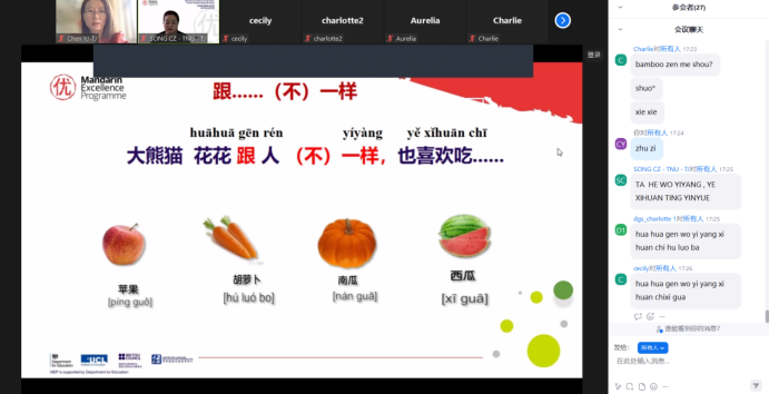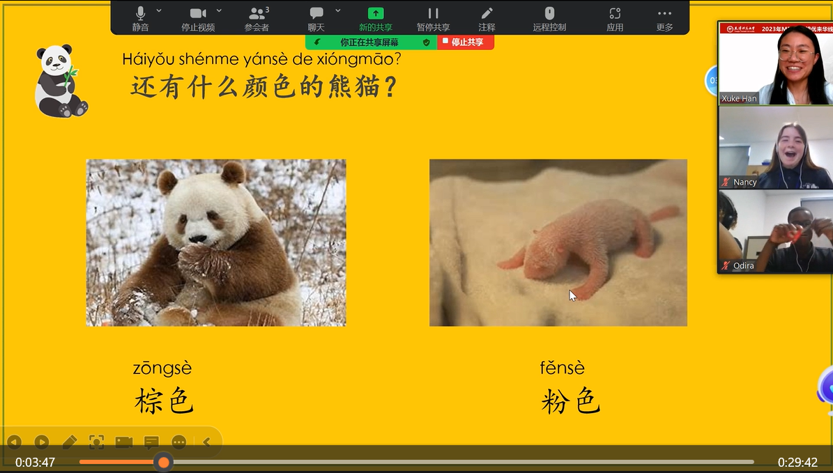 员工志愿者的参与是“中文培优”项目员工暑期在线夏令营的一大特色。今年参加“中文培优”项目的员工志愿者全部为公司雷竞技raybet2021级和2022级汉语国际教育专业硕士研究生。他们拥有扎实的语言学功底和丰富的才艺,精心准备并完成了“熊猫面具制作”“学唱中文歌”“中国诗歌文化节”等文化课程的教学设计,完成了“参访语伴家庭”和“线上音乐会”活动视频录制,文化课件内容丰富、形式多样,活动视频生动形象、精彩纷呈。在课堂上,志愿者化身“小老师”,帮助学员巩固所学词汇和语法知识,锻炼中文交际能力。同时,在教学和实践过程中,员工志愿者也得到了充分锻炼,进一步丰富了专业知识,促进了专业技能和水平的提升。