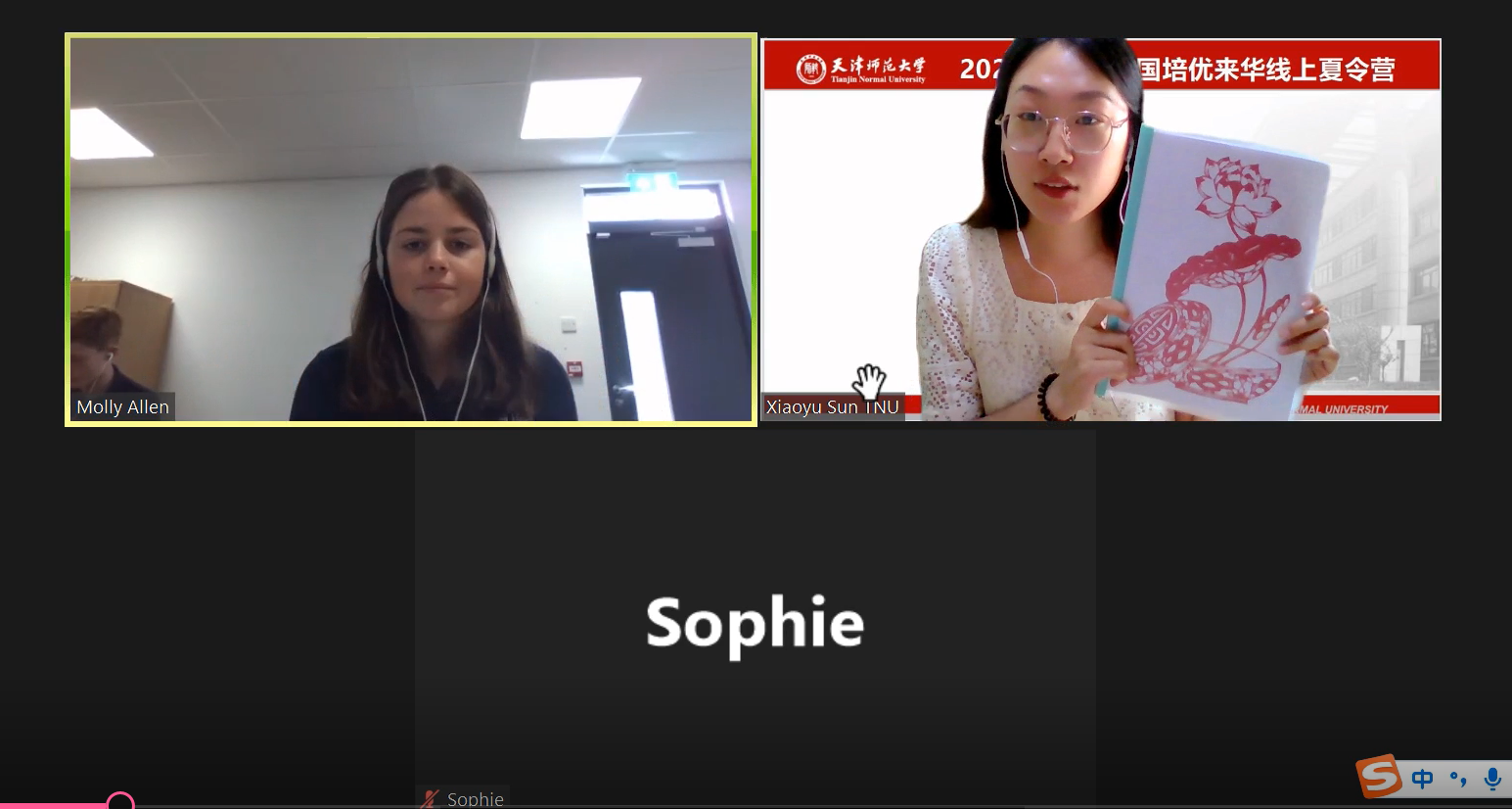 项目过程中,英国学员们兴趣盎然、兴致勃勃。在“熊猫与动物园”主题中,学员们通过云端动物园与国宝大熊猫亲密接触,不仅学习了与大熊猫有关的语言知识,还亲手制作了自己的专属熊猫面具。在“历史与文化遗产”主题中,学员们云端畅游北京,不仅学习了语言知识,还了解到中国丰富的地理文化,用中文和语伴分享自己畅游世界的经历。