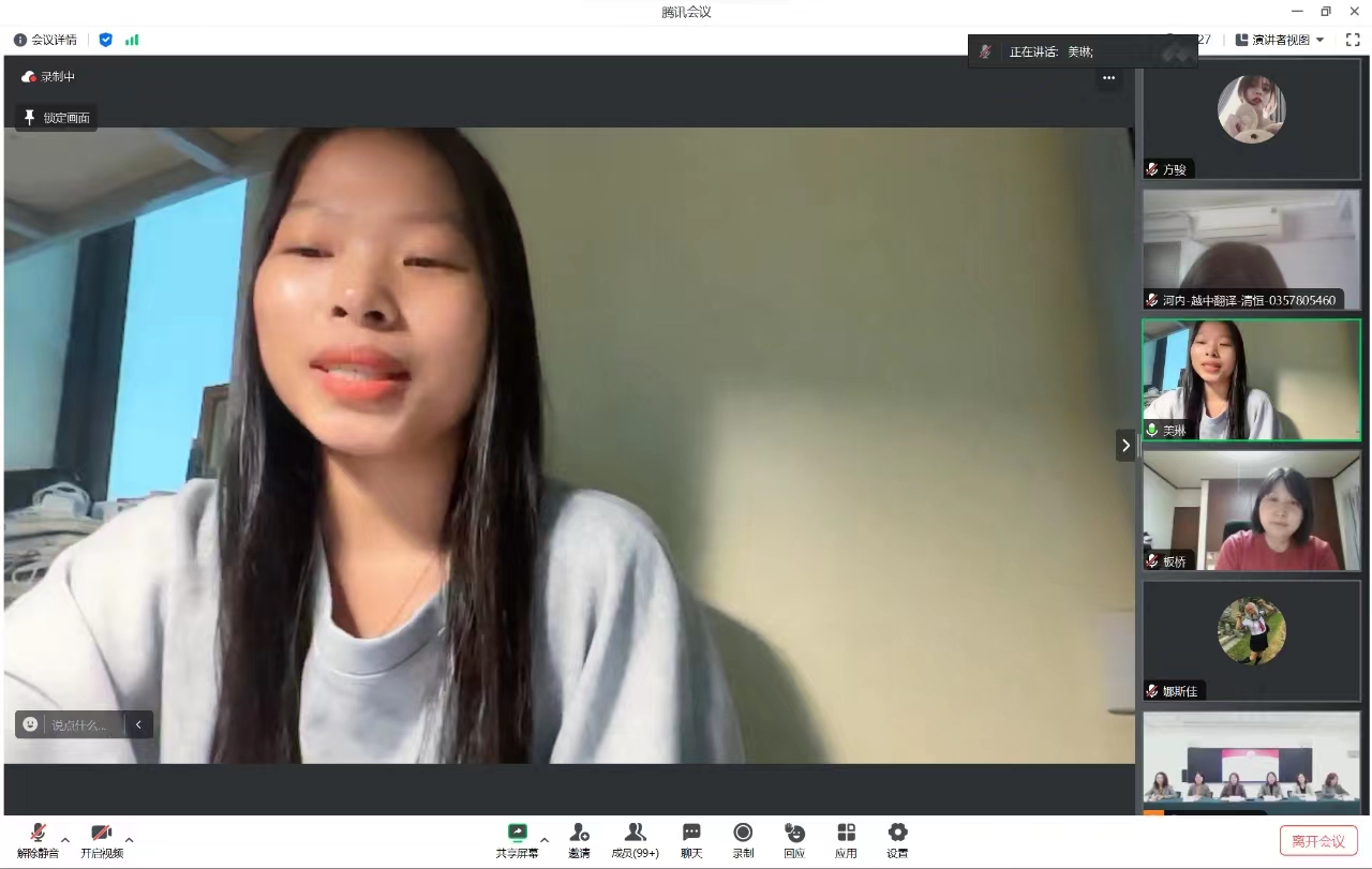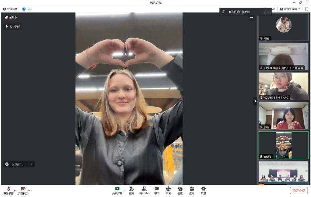 来自越南的美琳同学感谢天师大提供的宝贵学习机会,表示通过此次交流项目不仅能够学到更多的中文知识,还可以认识来自不同国家和地区的朋友,从而更深入地了解各个国家的文化和风俗习惯。