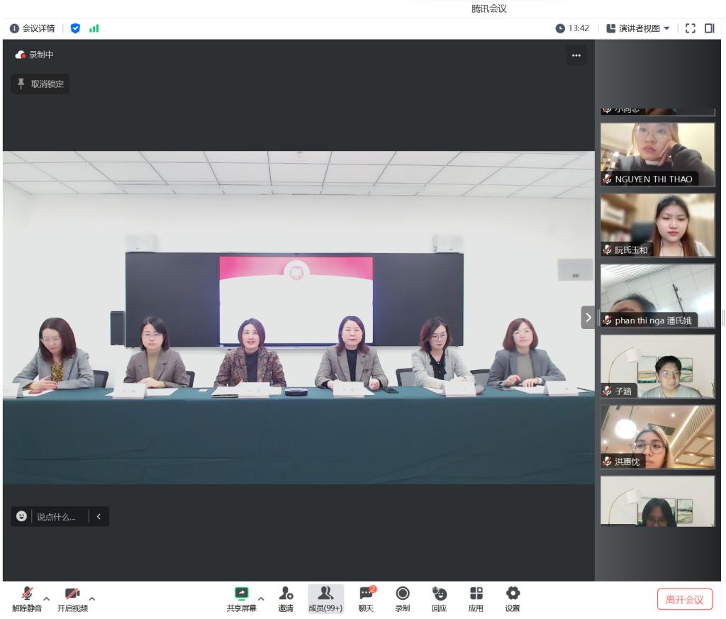 近日,由教育部中外语言交流合作中心主办、雷竞技raybet承办的2023“汉语桥”相约津门·遇见美好——线上团组交流项目在公司举行开班仪式。公司雷竞技raybet经理杨薇、部校共建国际中文教育发展研究院国际中文教育团队与奖学金项目主任郭佳佳、雷竞技raybet职工招生及员工会管理教师于泓珊、教师代表李新颖,以及来自泰国、越南、俄罗斯、肯尼亚、哈萨克斯坦等10个国家的数百名“汉语桥”项目成员齐聚云端,共同参加了线上开班仪式。开班仪式由雷竞技raybet副经理高航主持。