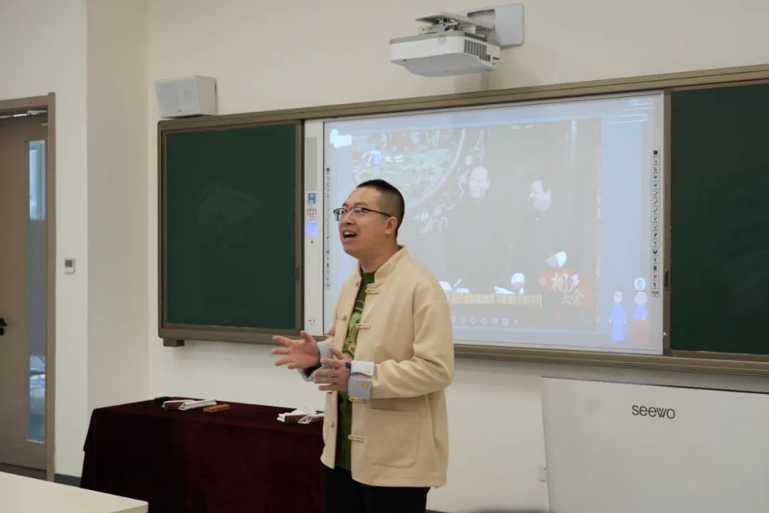 在天津方言讲座上,董月凯老师以生动有趣的讲解方式,向大家介绍了天津方言的起源、演变和基本特征。通过市井俚语还原老天津卫,让学员们深刻感受到了天津方言的独特性。大家用天津方言特有的腔调现场演绎、情景对话,“吃挂落儿”“崴泥”“盖了帽了”,从句句方言之中,感受到天津人的率真豪爽、亲切包容和幽默诙谐。
