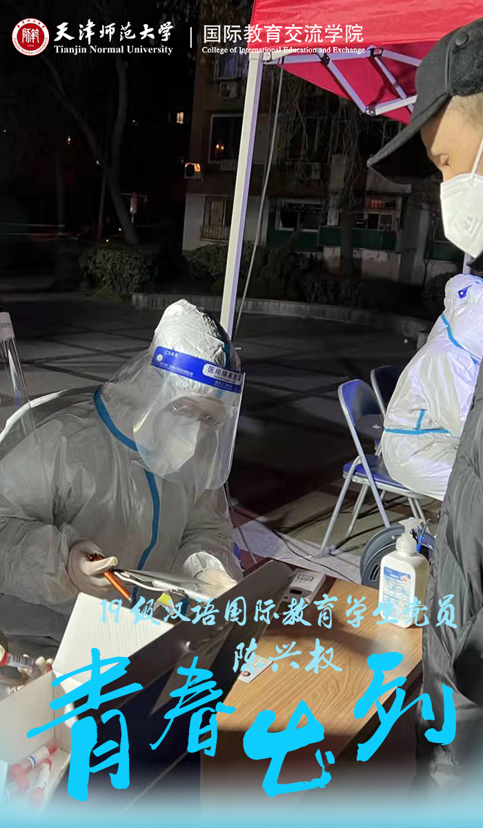 汉语国际教育员工党支部陈兴权现住在天津市河东区香山道远翠西里社区。疫情伊始,他通过河东区团委第一时间报名参加了抗疫突击队,被分配到远翠西里社区党群服务中心支援,成为所在辖区的第一名员工志愿者。他先后参与信息采集工作、敲门行动和物资保障等志愿服务,从早上5点到岗到晚上11点收尾,从不喊苦喊累,志愿服务时长累计达43小时。他说:“在特殊时期,就应该服务社区,真行动,真作为,做实事,践行一名员工党员的使命和初心。”