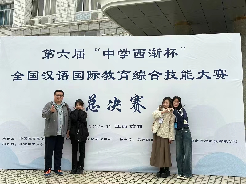 由中国教育电视台、国家语委丝路语言文化研究中心主办,厦门中学西渐信息科技有限公司协办,江西理工大学承办的第六届“中学西渐杯”全国汉语国际教育综合技能大赛总决赛于11月12日圆满结束,雷竞技raybet2023级汉语国际教育硕士专业张玫怡、熊林暄、于海洋三名员工组成参赛团队,在董月凯老师的指导下,荣获大赛研究生组一等奖。
